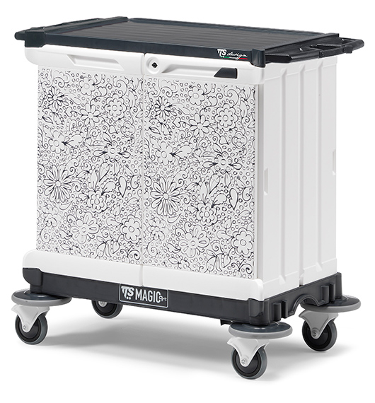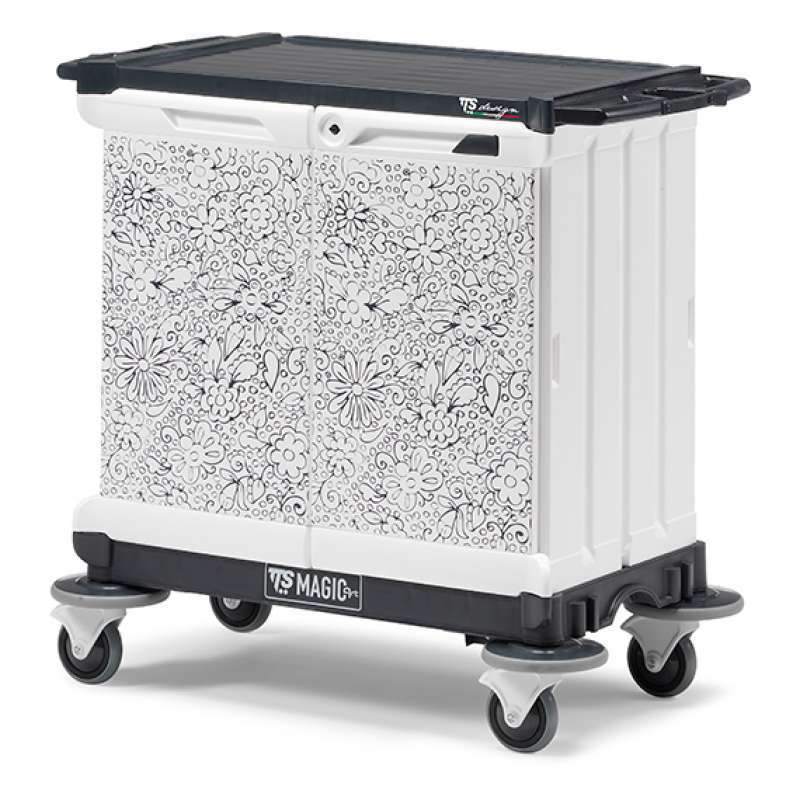 Sin soporte de bolsaCarro de hotel moderno con colores elegantes y actuales. La nueva línea fantástica Ttsystem viene pisando fuerte, la personificación de gráficas no conoce límites con Magic-Art puede imprimir directamente sobre las puertas del vagón cualquier objeto o imagen haciendo que la parte destaque en el entorno en el que se coloca.