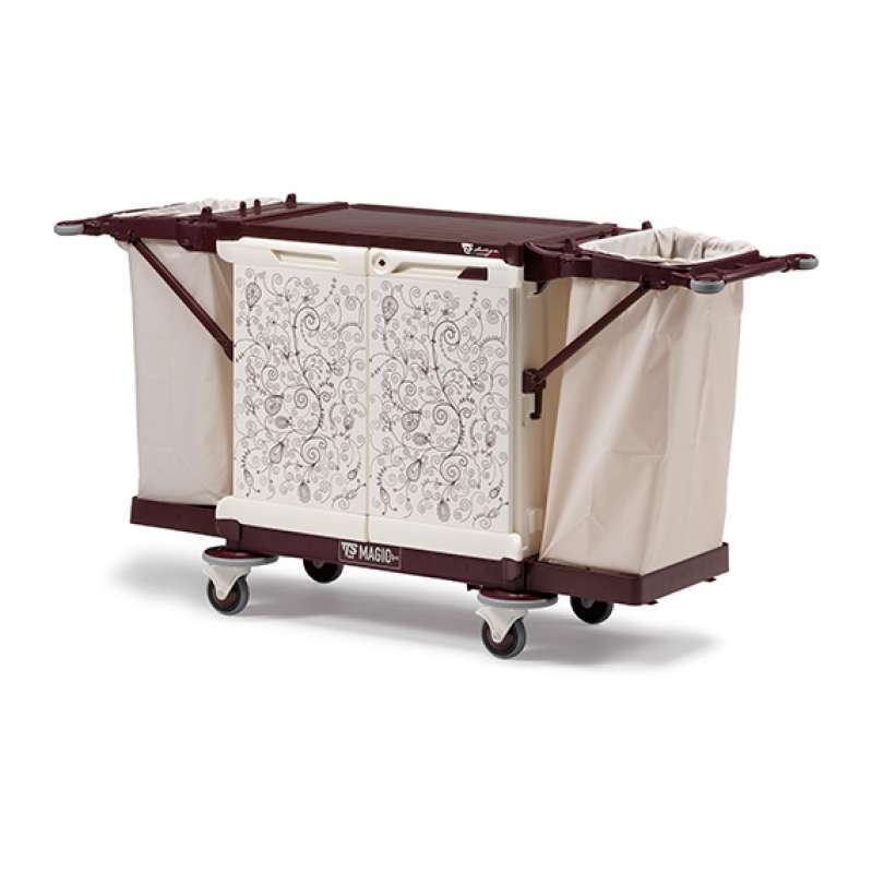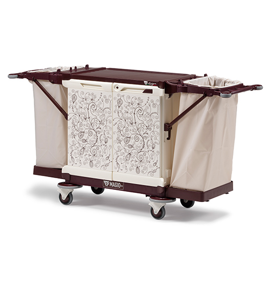 Ruedas Ø 12,5 cmMagic-art es la nueva línea fantástica de TTSYSTEM, carro único en su género la elegancia, la diversidad de estilo lo hace especial, cuenta con una variedad de funciones, cuidando al detalle todas sus características. Hecho completamente polipropileno. Magic-Art evoluciona el concepto de hacer compras para el sector de la hostelería. Ofrece la posibilidad de personalizar los gráficos, se puede imprimir directamente sobre las puestas del vagón, cualquier objeto o imagen haciendo que la parte del carro destaque en el entrono en el que se coloca.