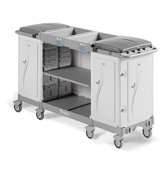 Sin soporte de bolsaLos carros Magic Hotel, gracias a su diseño moderno, ayuda a fortalecer su imagen, su servicio y profesionalismo, ya que son de gran capacidad, fácil de manejar, compacto, modular y con accesorios. Además contamos con una amplia variedad de carros muy útiles e innovadores tanto para hoteles, como para residencias.