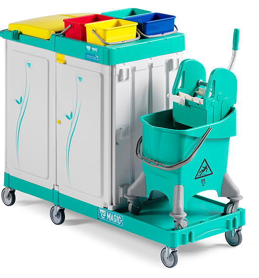 Sin soporte de bolsaEl carro de limpieza permite a la limpiadora ir de un lugar a otro llevando consigo todos los artículos necesarios para realizar su tarea de una forma cómoda. Cuenta con varios cubos de diferentes colores para separar el agua de otros productos químicos. Y si no quiere llevar todos los cubos puede quitarlos y colocar en el espacio sobrante utensilios de limpieza.