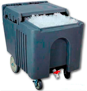 Duas rodas fixas e duas rotas com freios, tornam-as facilmente gerenciáveis. A torneira e a bandeja de drenagem do fundo evitam que o gelo entre em contato com a água.