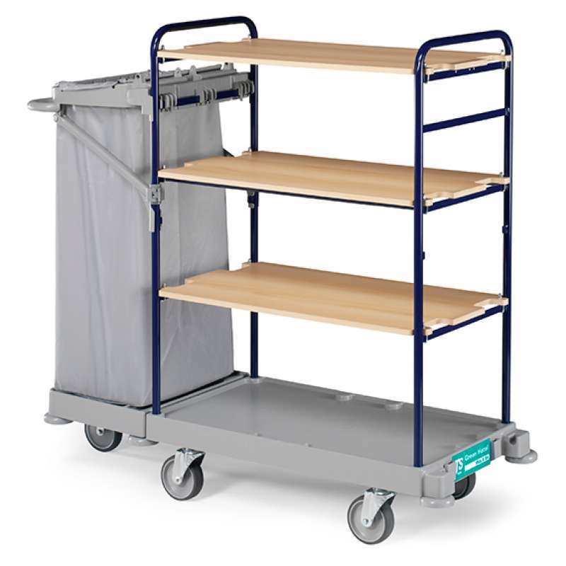 · As três prateleiras são utilizadas para o transporte de lençóis e toalhas limpas, ou frascos e diversos utensílios.