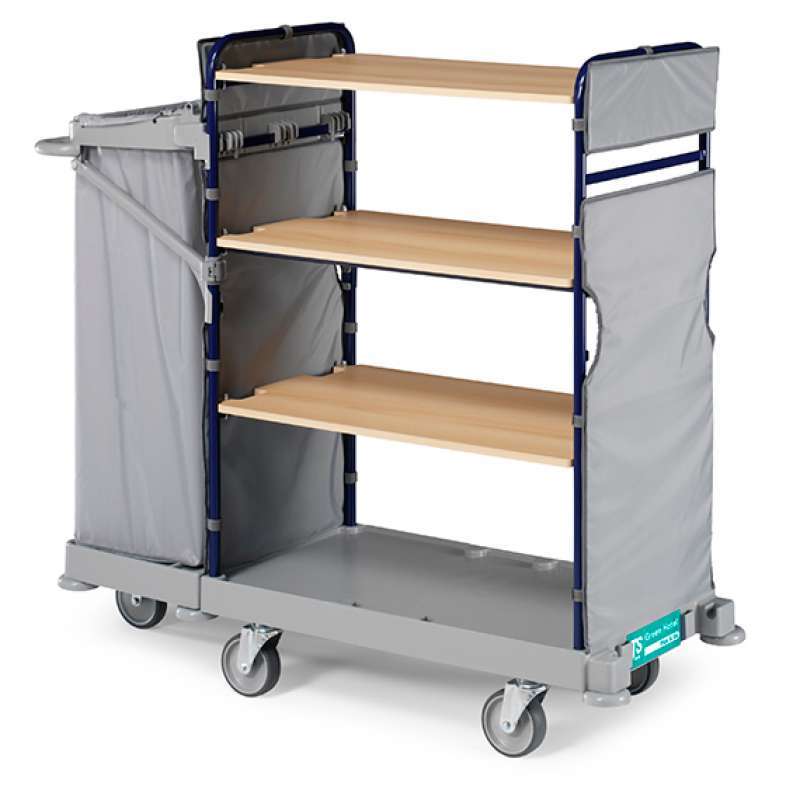 · É equipado com porta saco em plástico de 120 lt para a coleta da rouparia suja.