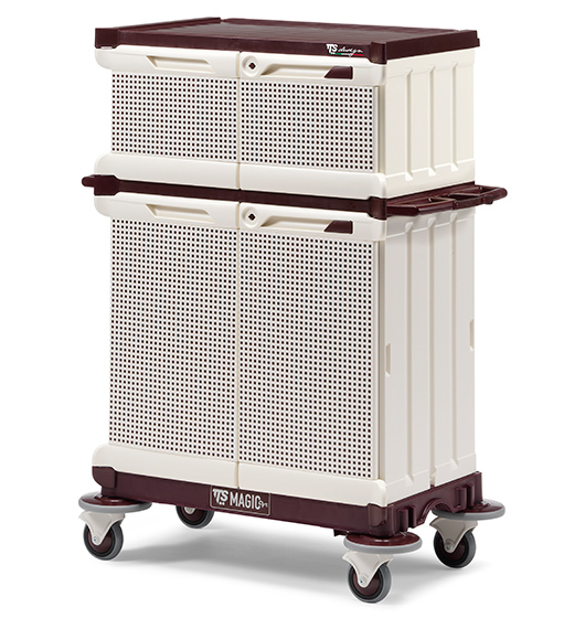 · As dimenssões deste carrinho lhe tornam ideal para o serviço de cerca 10-12 quartos por andar.