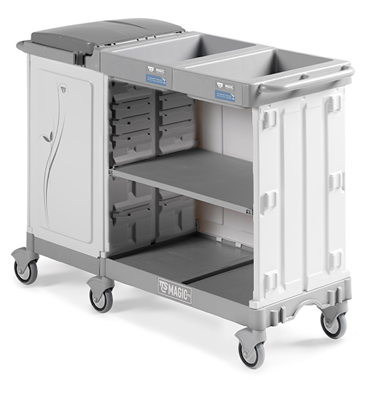 · Com capacidade para transportar roupa, louça e outros equipamentos necessários para o serviço de quartos.