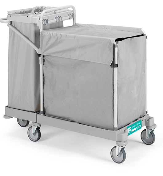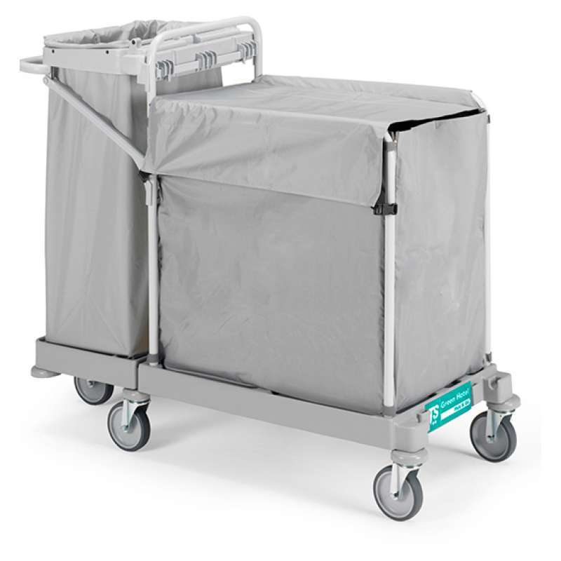 · O carrinho pode ser enganchado aos carrinhos de serviço de Hotel graças a uma junta, criando assim um sistema completo ideal para o operador de hotel.
