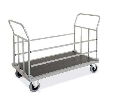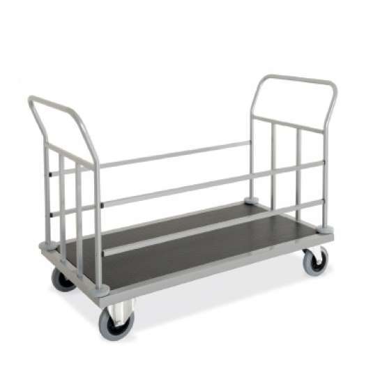 Rodas Ø 16 cmCarrinho porta-malas de aço pintado de alumínio com base de madeira com proteção.