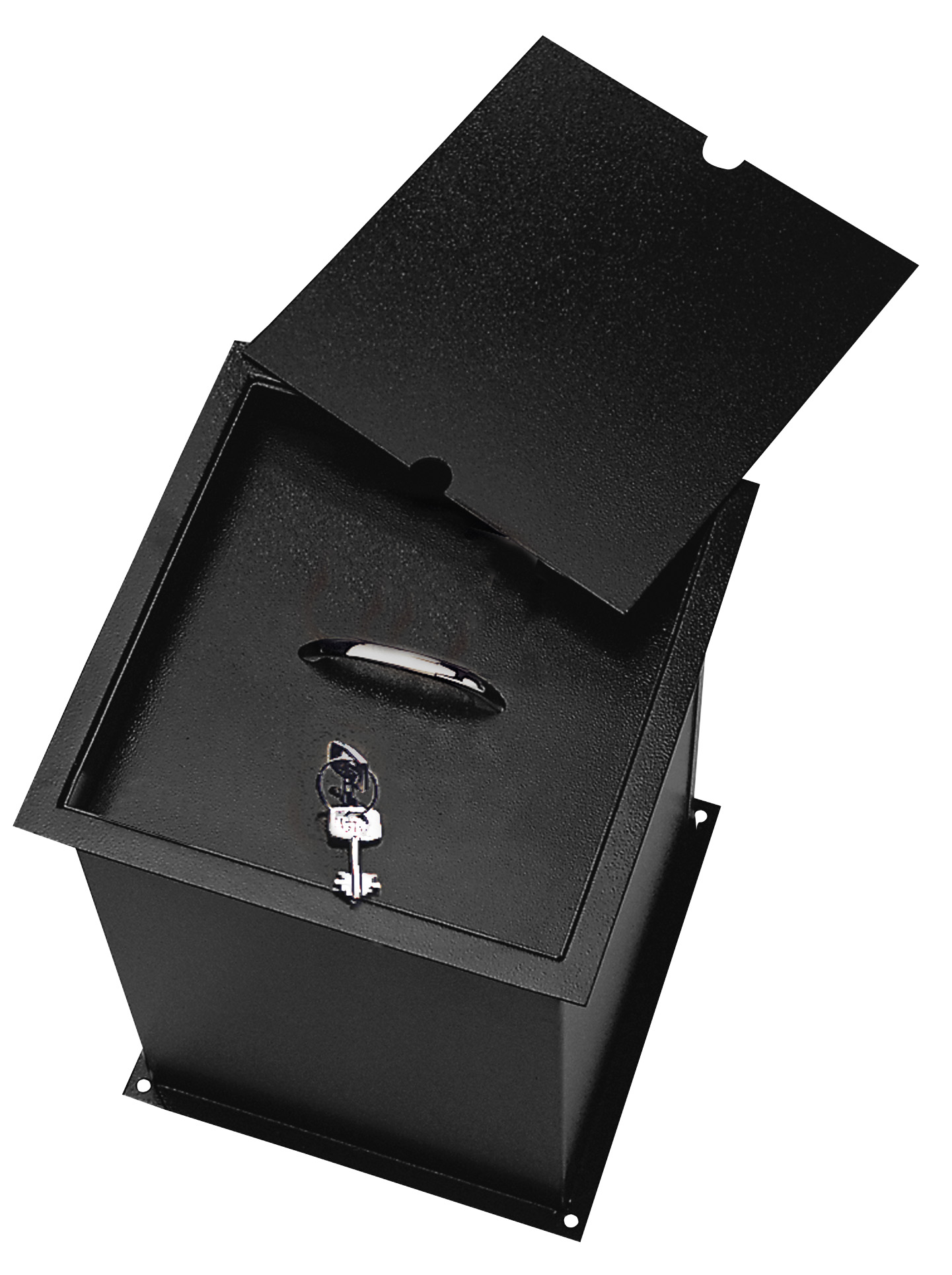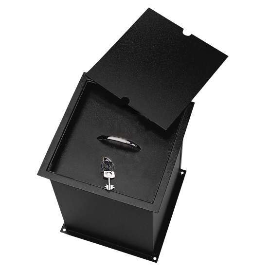 Cofre de segurança embutida no chão. Uma vez instalado, sob um tapete ou ocasionais mobília é perfeitamente escondida. Construção muito robusta.
