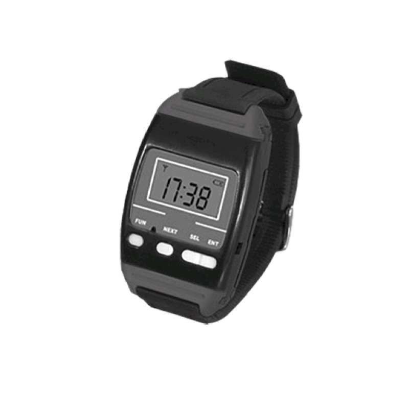 - O empregado de mesa recebe esta chamada através de um receptor em forma de relógio mediante um som, vibração ou ambos e/ou no ecrã LED receptora, indicando o numero de mesa que chama e se pede a conta ou um serviço.